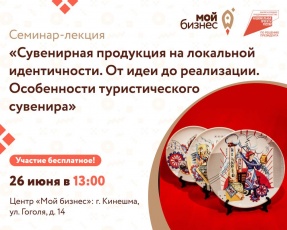 Центр «Мой бизнес» приглашает предпринимателей и самозанятых граждан Кинешемского и близлежащих муниципальных районов, а также физических лиц на бесплатный семинар-лекцию на тему: «Сувенирная продукция на локальной идентичности. От идеи до реализации. Особенности туристического сувенира».