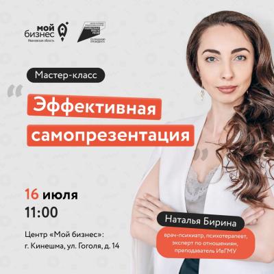 Центр «Мой бизнес» приглашает предпринимателей и самозанятых граждан, а также физических лиц на мастер-класс «Эффективная самопрезентация».