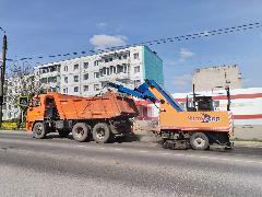В результате работы новой техники на многих дорогах, на которых установлены бордюры, уже стало гораздо чище. Учитывая накопившийся объем смета, на ряд дорог техника выходит повторно.