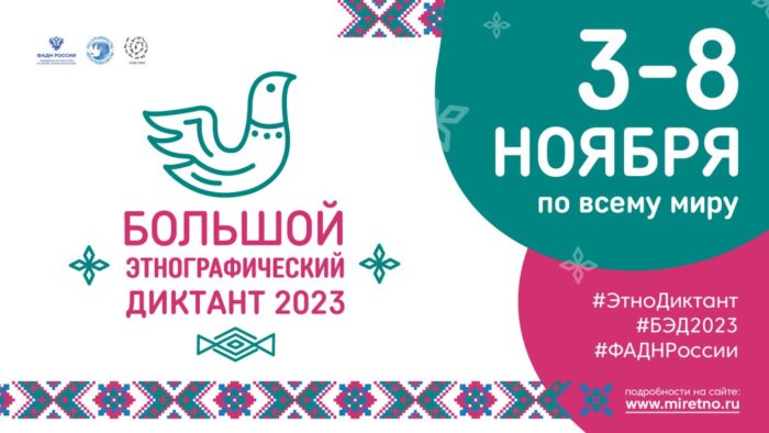 Большой этнографический диктант – международная акция, которая проводится с 2017 года. Её целью является оценка уровня этнографической грамотности населения, знаний о народах, проживающих в Российской Федерации, а также привлечения внимания широкой общественности к вопросам межнационального мира и согласия. В 2022 году к акции присоединились 183 государства.