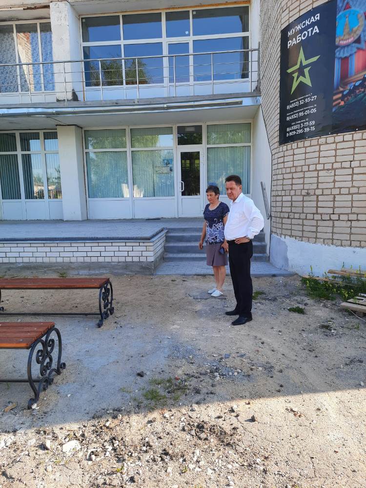 На 85 % выполнены работы и в с. Афанасьевское. Там идёт устройство крыльца-сцены. В частности, положена плитка, устроен пандус, заменены перила на балконе, установлены 6 лавочек.