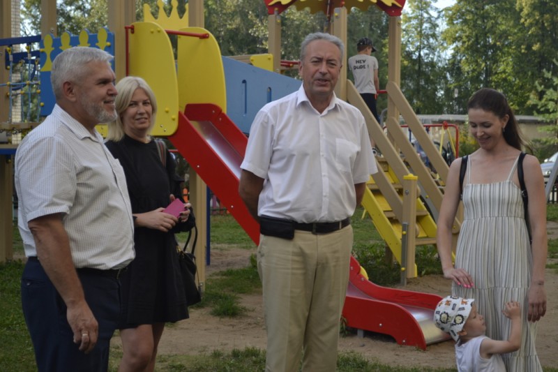 Во дворе домов 164А и 166А по ул. Лежневской появилась новая территория для отдыха детей. Проект реализован в рамках программы по поддержке местных инициатив. Открытие площадки местные жители отметили праздничным представлением для детей. Вместе с ними результат работы оценили депутаты Ивановской городской Думы Борис Шаляпин и Владимир Козлов.