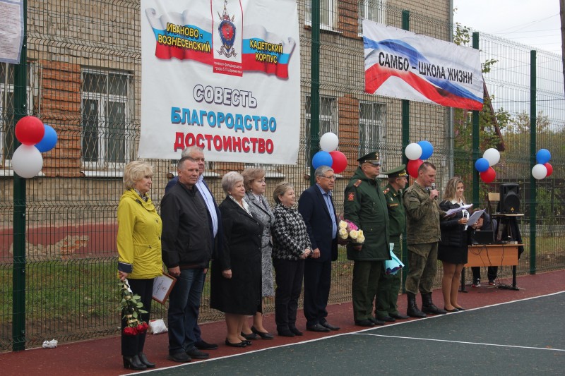 В ходе торжественной церемонии открытия площадки высокие гости поздравили руководство и коллектив учебного заведения с этим событием, а также с Днем учителя, который сегодня отмечает вся страна. Вместе с добрыми пожеланиями и памятными подарками в адрес школы от имени Председателя Ивановской городской Думы Александра Кузьмичева директору школы был вручен Приветственный адрес. В нем Александр Станиславович отмечает, что «благодаря стараниям, профессионализму, чуткости, любви и заботе педагогов наши дети учатся дружить, любить, помогать тем, кто в этом нуждается, приходить друг другу на выручку и мыслить неординарно. И все педагоги, не только в праздничный день, но и всегда заслуживают слов искренней благодарности за ежедневный труд, творческий подход в деле образования талантливых и одаренных детей, за достойное воспитание граждан своей страны и прививание им патриотических чувств!». Открывшаяся в 43-й школе новая площадка позволит школьникам заниматься с большим удовольствием физкультурой и играть в волейбол или баскетбол с друзьями, а жителям микрорайона приходить сюда всей семьей для занятий воркаутом, чтобы также «быть на спорте» и укреплять здоровье. Как рассказал депутат Ивановской городской Думы Дмитрий Моисеенков, открытие спортплощадки в День учителя – вдвойне знаковое мероприятие. Он отметил, что строительство спортивной площадки в средней школе № 43 велось по региональному проекту «СпортШколаГород». На территории образовательного учреждения обустроено поле для занятий волейболом, баскетболом и мини-футболом, огражденное 3D-забором, с наличием безопасного резинового покрытия, а также установлен комплекс воркаут для занятий детей и взрослых. «Сначала в этой школе обновился спортивный зал, а затем новые спортивная площадка и воркаут зона - так что мечты многих школьников, их родителей и самих педагогов сбылись!», - подчеркнул депутат. В ходе открытия перед гостями состоялся парад медалистов, учащихся школы – тех ребят, которые уже достигли значимых спортивных успехов, а затем прошло выступление школьников с элементами демонстрации разных видов спорта. Как было отмечено ранее, работы на объекте выполнила компания «Авангард». К работе строители приступили в сентябре, после того как прежняя подрядная организация не смогла выполнить свои обязательства и была внесена в реестр недобросовестных поставщиков услуг. Кроме этого, на средства, выделенные по наказам избирателей депутатам Ивгордумы Дмитрию Моисеенкову и Ивоблдумы Сергею Баранову, а также на сэкономленные деньги, на площадке дополнительно удалось установить 7 комплексов силовых и функциональных тренажеров, стол для игры в настольный теннис, смонтировать скамейки и урны. По словам директора школы № 43 Надежды Виткиной, сегодня в школе занимаются более 650 учеников, есть и кадетский корпус, где воспитывается порядка 160 кадет (учащиеся 5-11 классов). Кадеты являются неоднократными победителями российских, межрегиональных, областных соревнований, различных смотров, конкурсов и фестивалей. В школе дети посещают секции самбо, дзюдо, волейбола, баскетбола, художественной гимнастики. А с этого года здесь ещё открываются секции бокса и легкой атлетики. Всего в 2023 году по проекту «СпортШколаГород» в школах областного центра капитально отремонтировано 4 с