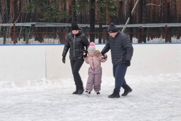 В первый день нового 2023 года юные ивановцы вместе с родителями пришли на открытый каток, обустроенный на спортплощадке школы №41.