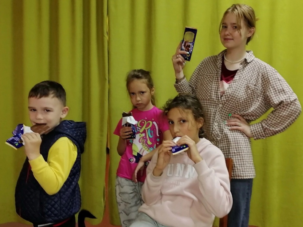 После интеллектуальной части перешли к подвижным играм. Ребята с удовольствием поучаствовали в конкурсах «Самый ловкий», «Шоко-баскетбол», «Пронеси – не урони!», «У кого шоколад?».