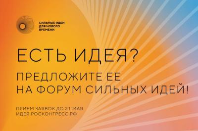 Прием заявок продлится до 21 мая: https://ideas.roscongress.org/