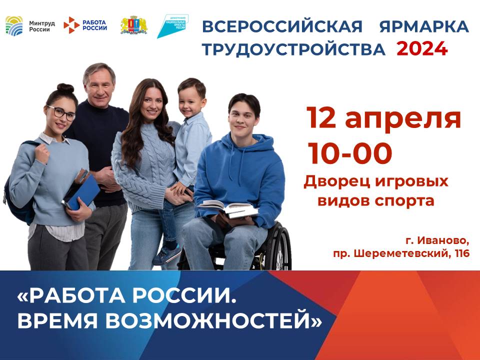 Всероссийская ярмарка трудоустройства «Работа России. Время возможностей» стартует в России 12 апреля в рамках регионального этапа. Масштабное событие объединит работодателей и соискателей всей страны.