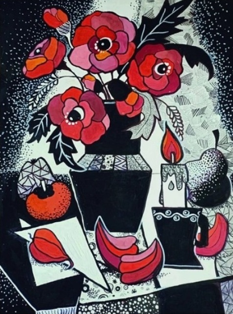 Анна Васильева, 11 лет. «Красные маки», гуашь, черный маркер, ДХШ г. Шуя.