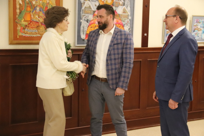 С юбилеем Почетного гражданина города Иванова сегодня 24 апреля поздравили глава города Иванова Владимир Шарыпов, председатель Ивановской городской Думы Александр Кузьмичев и коллектив мэрии. Они пожелали имениннице счастья, крепкого здоровья и всего самого доброго, а также вручили цветы и подарки.