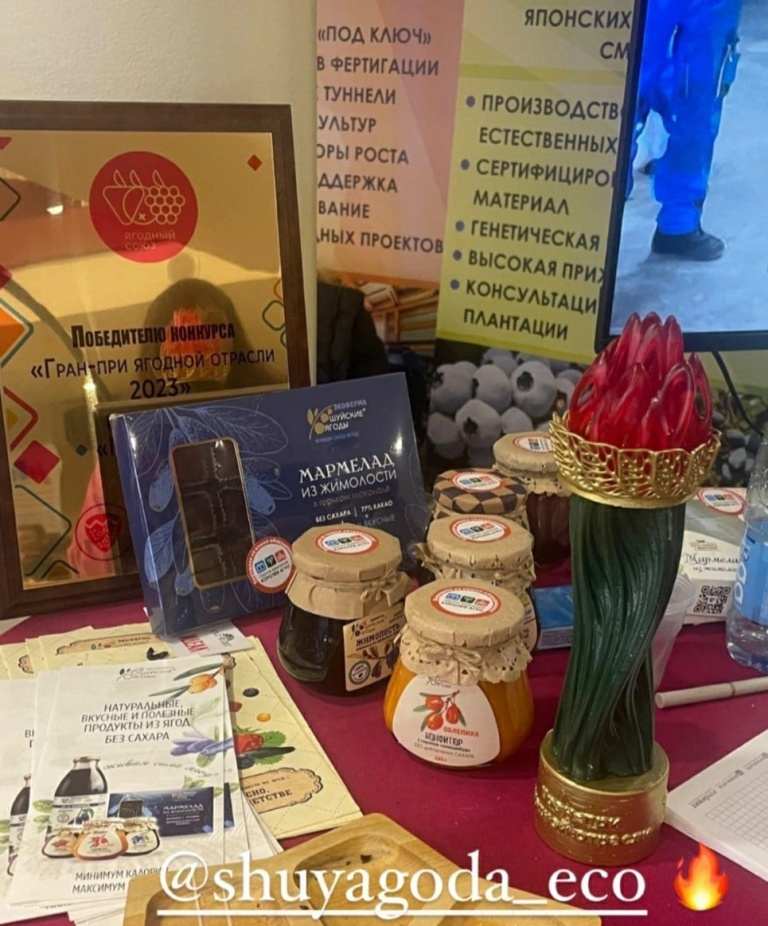 В ходе мероприятия подведены итоги конкурса «Гран-при ягодной отрасли 2023». В номинации «Новаторский продукт года» в число победителей вошла эко-ферма «Шуйские ягоды». Высокие оценки жюри получил мармелад из жимолости в горьком шоколаде.