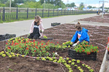 Действительно, подрядная организация, возглавляемая индивидуальным предпринимателем Артемом Алексеевичем Вагановым, приступила к высадке цветов. Специалисты украшают клумбы бегониями, сальвиями, бархатцами, бальзаминами... Рассаду уже высадили в клумбы на площади Ленина и Арбате. А в понедельник, 5 июня, специалисты работали на пешеходном Октябрьском мосту. За этим кропотливым делом наш корреспондент и застал сотрудников подрядной организации.
