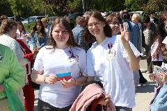 К праздничной дате волонтеры организовали акцию «Российский триколор». Сегодня кинешемцам и гостям города раздавали ленточки цветов российского флага.
