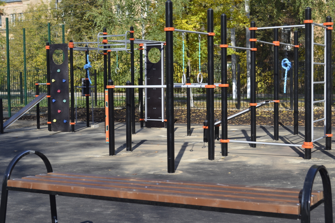В соответствии с проектом новая школьная спортивная площадка разделена на две зоны. Здесь уже установлен мини-стадион с ограждением для занятий футболом, баскетболом и волейболом, а также площадка для воркаута.