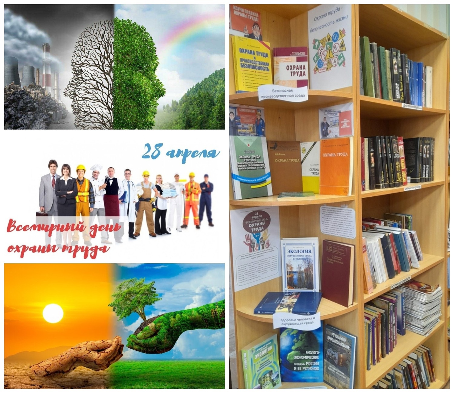 Ежегодно 28 апреля Международная организация труда отмечает Всемирный день охраны труда, уделяя особое внимание какой-либо актуальной теме, связанной с безопасностью и гигиеной труда. В этом году центральной темой станет влияние изменения климата на безопасность и гигиену труда. В Центральной библиотеке оформлена книжная выставка «Охрана труда – безопасность жизни». Вниманию читателей представлена литература по охране труда – учебные пособия и нормативные документы, включающие правовые, организационно-технические, санитарно-гигиенические и иные мероприятия, а также книги об экологии и природопользовании.