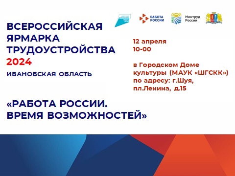 Всероссийская ярмарка трудоустройства «Работа России. Время возможностей» 12 апреля 2024 года