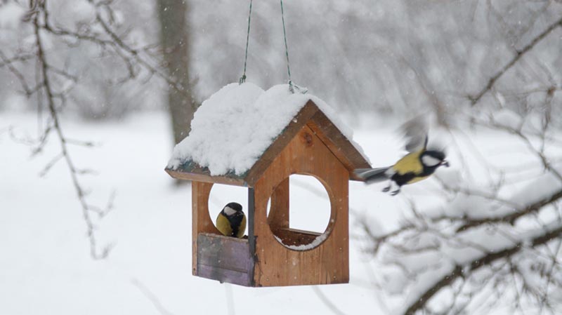 Подкармливайте птиц, иначе они будут выклевывать плодовые почки на деревьях. Особенно позаботьтесь о наших друзьях — синичках. Прикрепите для них на стволах яблонь полоски несоленого сала. Они прилетят полакомиться, а заодно и почистят стволы от зимующих на коре вредителей. Нежареные семечки насыпьте в ведро и подвесьте его под навес. Синицы будут залетать в ведро кормиться, а воробьи и сороки — побоятся. Крупу для птиц не насыпайте — они ее не едят.