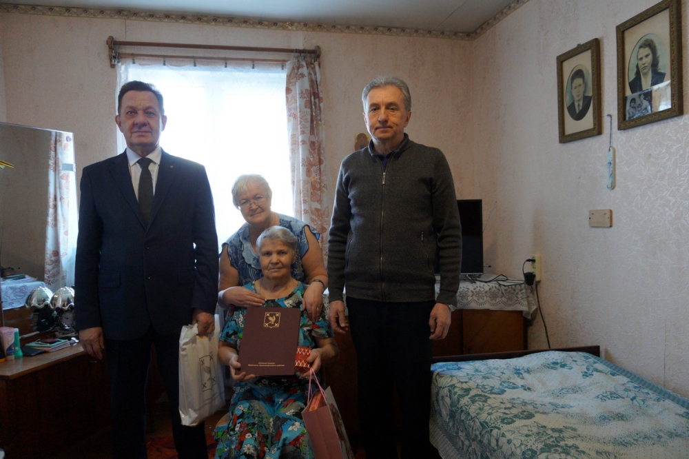 Глава Шуйского муниципального района С.А. Бабанов и руководитель Введенского сельского поселения М.В. Румянцев побывали в гостях у виновницы торжества, тепло поздравили её с такой замечательной датой, пожелали ей всего самого лучшего и преподнесли небольшие памятные подарки.
