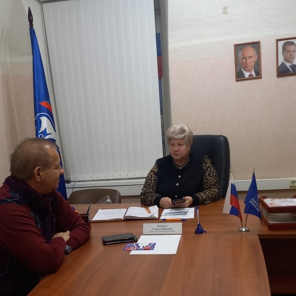 2 декабря заместитель председателя Ивановской городской Думы Галина Бочкова провела приём граждан в региональной Общественной приемной вместе с председателем Совета 2-го избирательного округа Сергеем Макаровичем Зиминым.