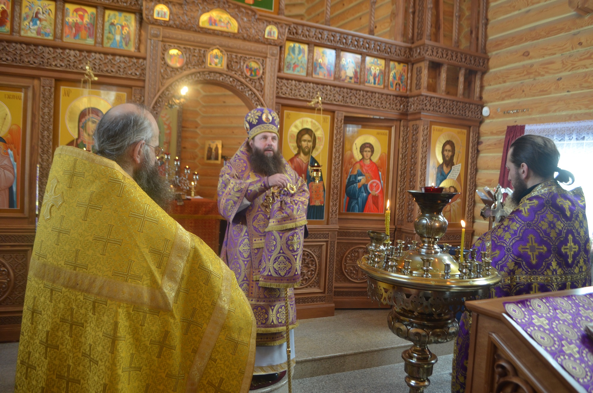Его Преосвященству сослужили настоятель храма иеромонах Герасим (Мтварелидзе), клирик храма иерей Евгений Слепухин.
