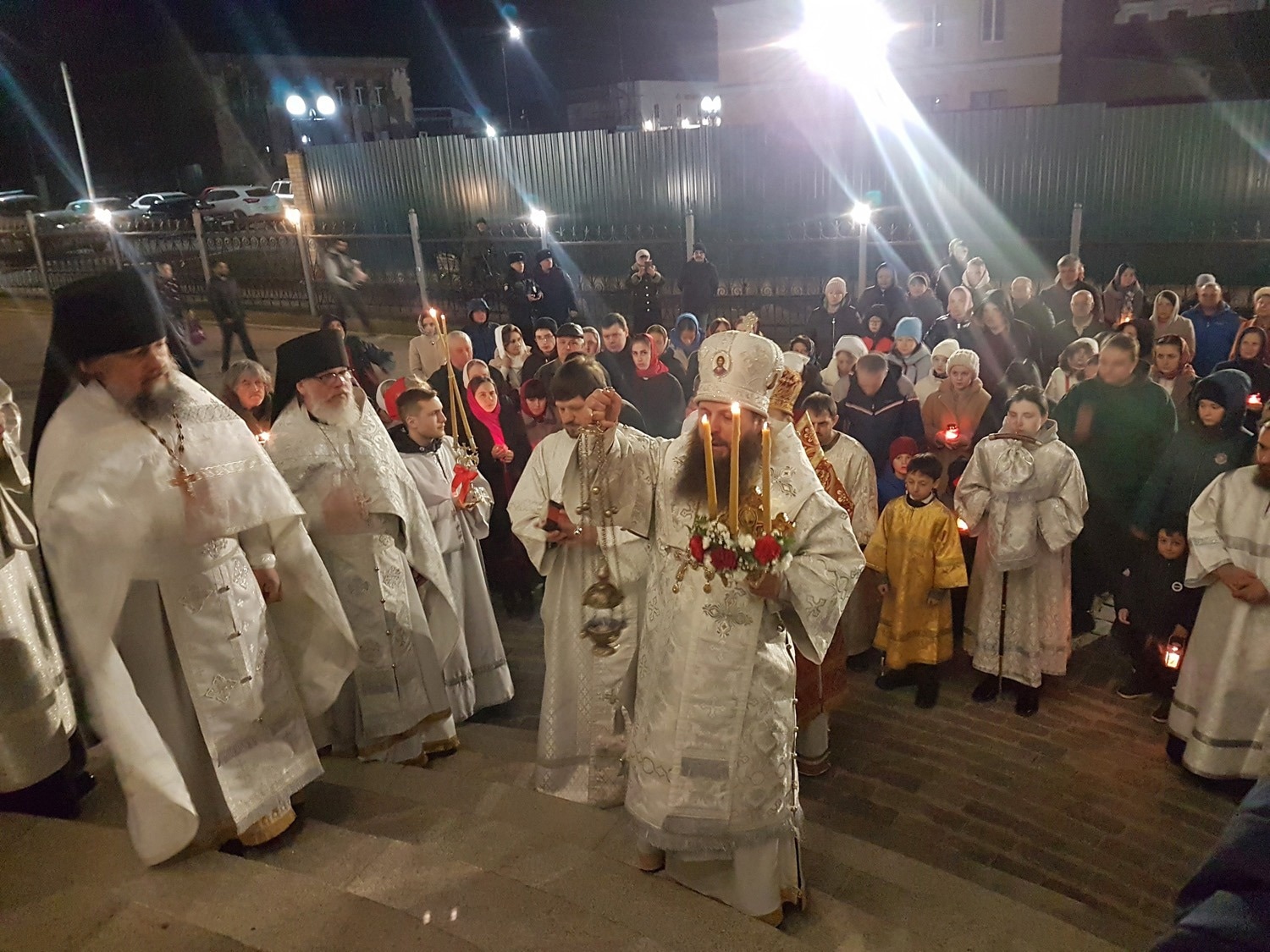 В ночь с 15 на 16 апреля в Воскресенском кафедральном соборе г. Шуя епископ Шуйский и Тейковский Матфей и епископ Савватий (Перепелкин) совершили Пасхальные богослужения — крестный ход, Пасхальную заутреню и Божественную литургию свт. Иоанна Златоуста.
