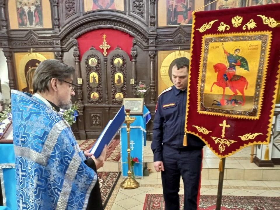 19 февраля в Казачьем храме Сретения Господня города Кинешма, после Божественной литургии, был совершен чин освящения воинских знамен, являющихся хоругвями.