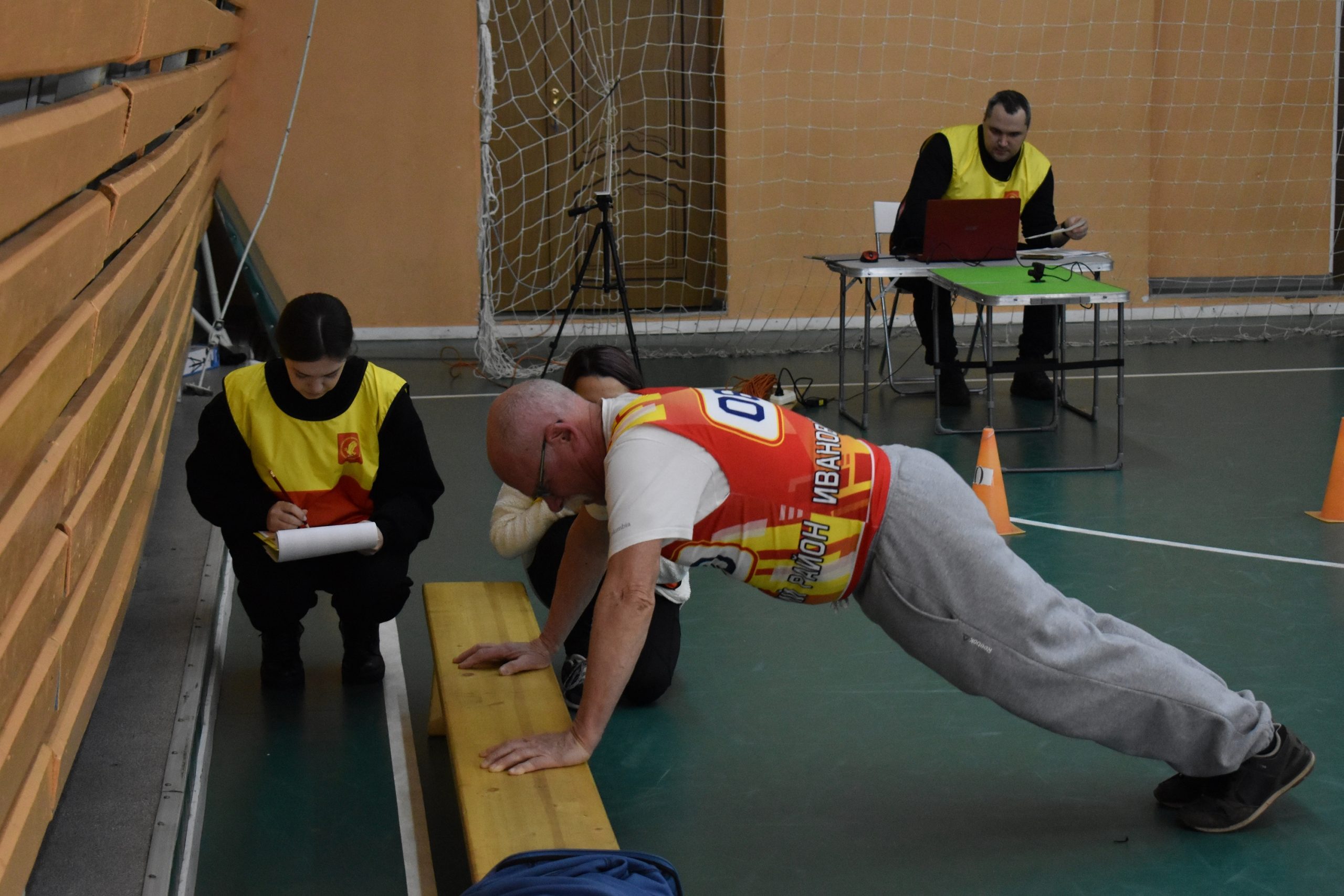 Отжимания и упражнение с наклонами все участники выполняли правильно и с усердием, никто не работал вполсилы. Молодые люди показывали отличные результаты, стремясь обогнать соперников в баллах. Также можно только позавидовать тому, с какой отдачей пенсионеры трудились на гимнастической скамье.