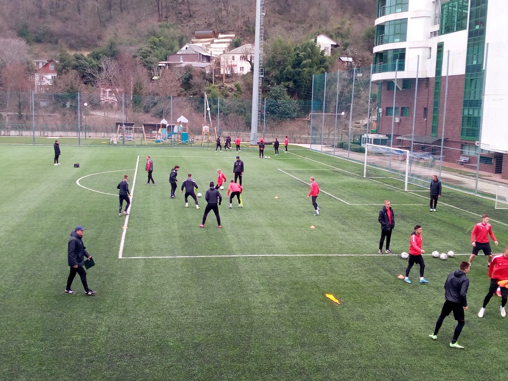 4 марта состоялся первый полноценный тренировочный день сочинских сборов, встретивший наших футболистов пасмурной погодой.