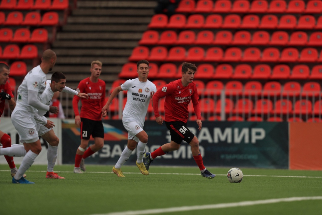 Игра началась атаками красно-черных. На третьей минуте после подачи с угла поля Александр Лихачев прицельно бил головой, но мячу путь к воротам преградил один из футболистов «Металлурга». На шестой минуте Горовых, ворвавшись в штрафную в зоне левого полуфланга, мощно стрелял по воротам, но Матюша справился с этим сложным ударом. Было опасно. Первые десять минут вообще прошли с преимуществом ивановцев. Наши ребята провели несколько опасных атак. И это преимущество воплотилось в гол. Даниил Горовых мягко набросил со штрафного на голову Скворцова, который здорово поборолся на линии штрафной и скинул в центр, где оказался Роман Ермолин. Рома не стал ничего придумывать и просто пробил в касание левой ногой по еще не опустившемуся мячу. Снаряд полетел сильно и по хитрой траектории, которую Максим Матюша разгадать не смог. Великолепный скример! 1:0!