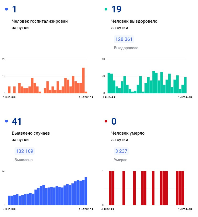 По состоянию на 2 февраля 2023 года на территории Ивановской области зафиксировано 132 169 случаев заболевания новой коронавирусной инфекцией, за сутки поставлен 41 диагноз.