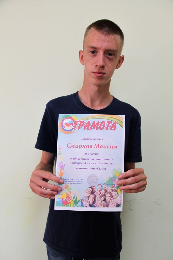 Победителем областного конкурса в номинации «Семья» стал Смирнов Максим, который был награжден грамотой. Афонин Михаил получил благодарственное письмо за участие в номинации «Дети-наше отражение».