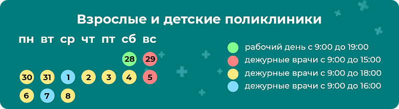 Узнать точную информацию о графике работы врачей можно, позвонив в кол-центр своей поликлиники или на сайте медучреждения.