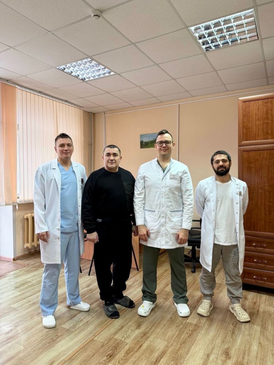 Операционную бригаду возглавлял заведующий отделением торакоабдоминальной онкологии к.м.н. В.А. Суворов, а также врачи-онкологи С.В. Журавлёв и А.М. Алибеков.