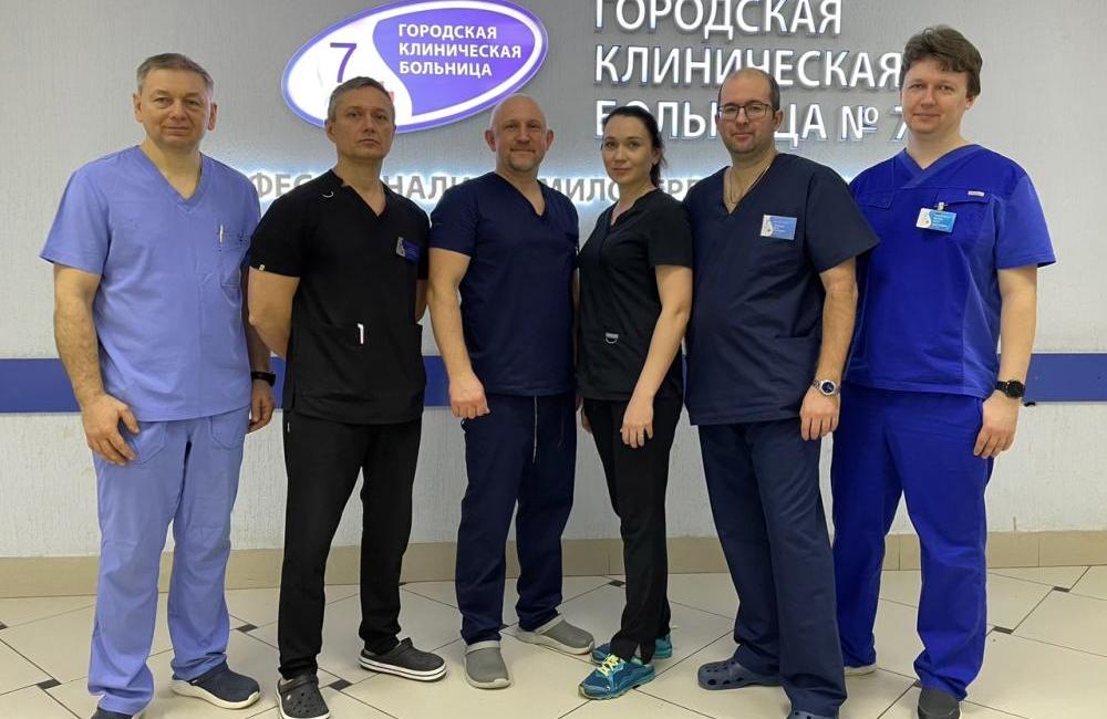 На фото врачи хирургического отделения Седьмой городской клинической больницы, которые выполняют операции на венах нижних конечностей.