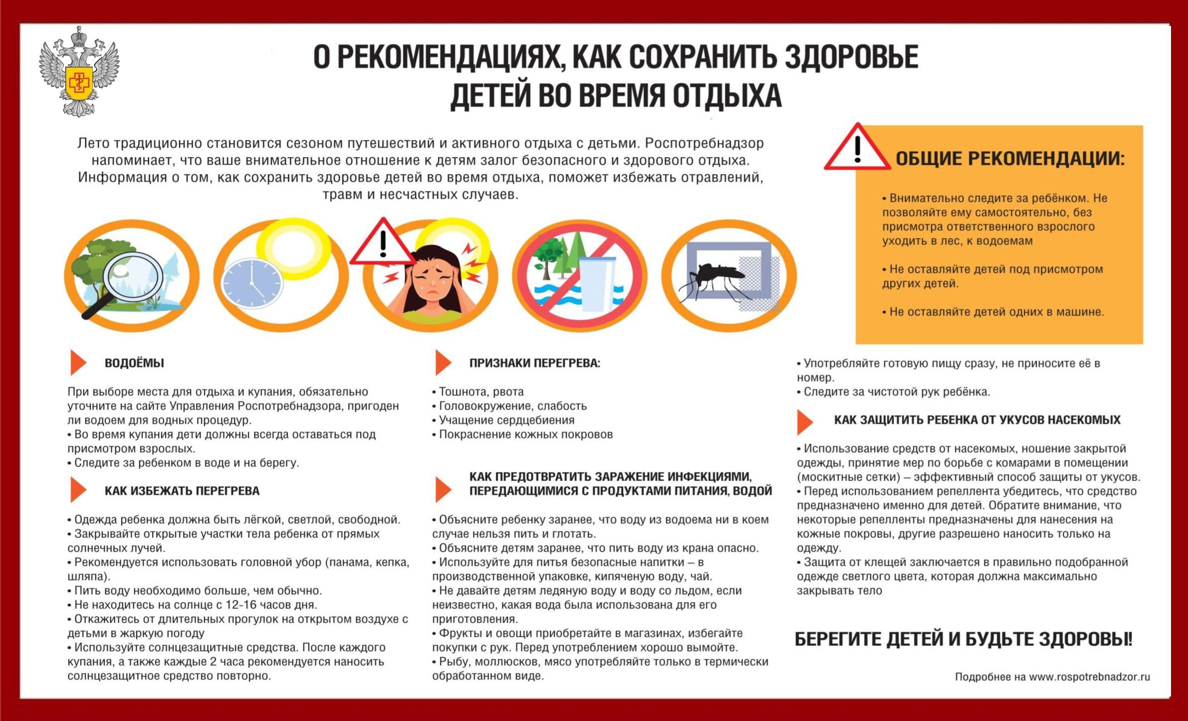 Информация о том, как сохранить здоровье детей во время отдыха, в карточке здесь.