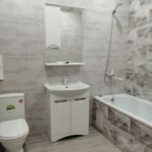 Раздельных санузлов - нет, В комнате ламинат 33 премиум класса, шикарные дизайнерские обои новых современных коллекций, окна ПВХ, двери натуральный эко шпон, дизайнерский экологический камень на стенах. квартира выполнена в классических светлых тонах, диодное освещение по всей квартире, огромная гардеробная для ваших вещей