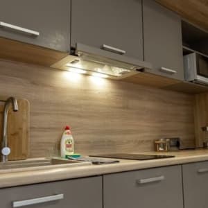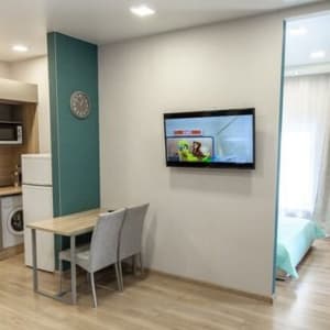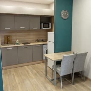 кухня, большая кровать с ортопедическим матрасом, микроволновая печь, холодильник.